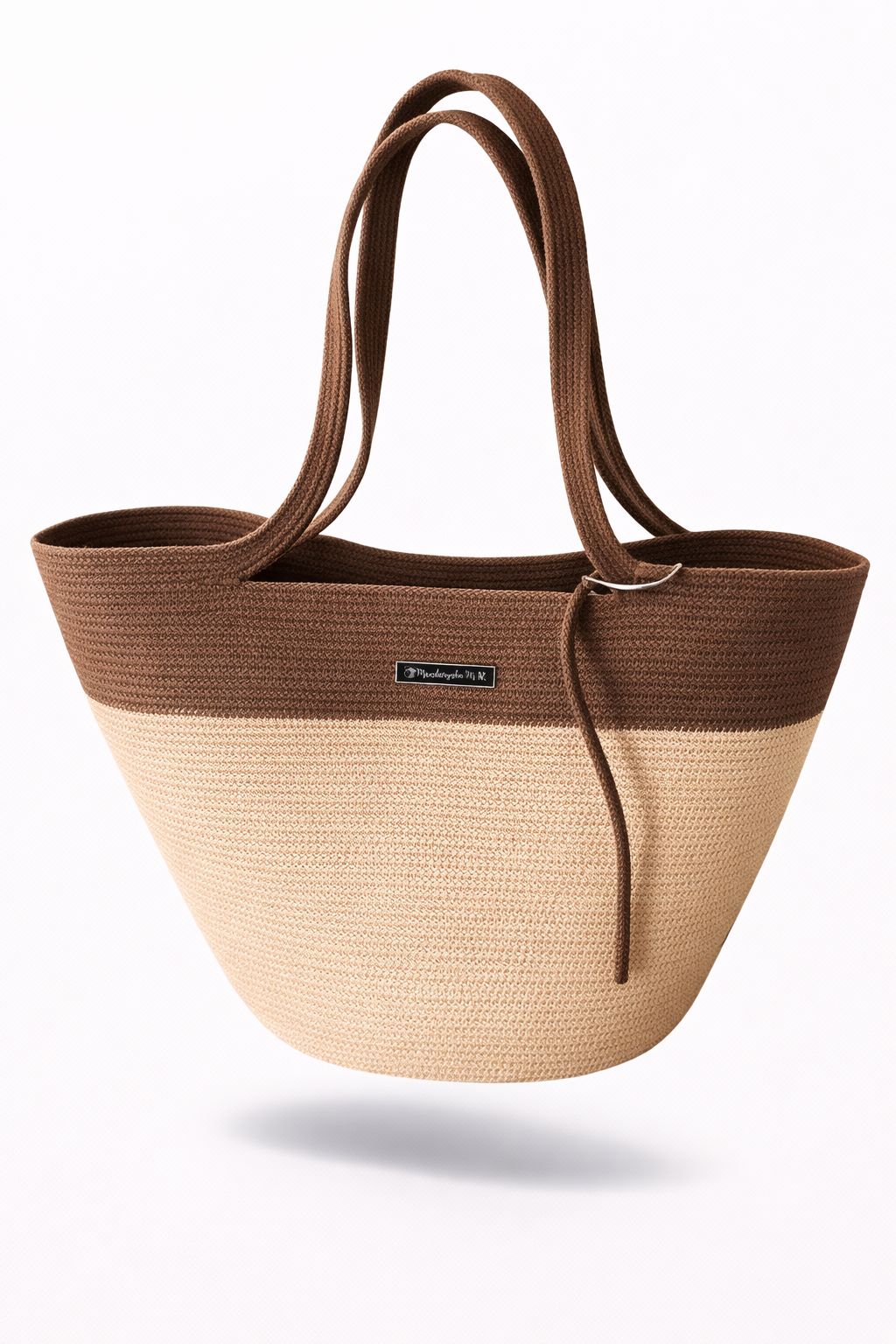 Model w odcieniach beżu z delikatnymi paskami to kwintesencja naturalnego stylu. Okrągłe dno sprawia, że torba jest pojemna i pięknie się układa, a jednocześnie zachowuje lekkość wizualną. Doskonała na co dzień – spokojna, ale z charakterem.